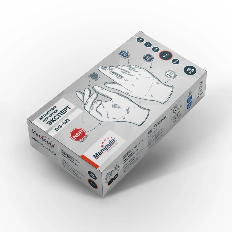 Перчатки ЭКСПЕРТ (DG-021), нитрил, 0.08 мм, неопудренные, текстура на пальцах, цвет белый