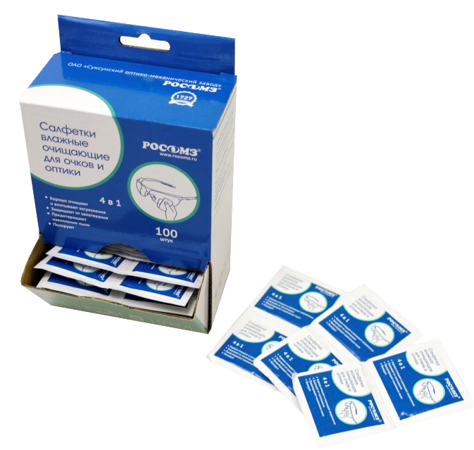 Влажные салфетки для чистки оптики (00704) 100 шт